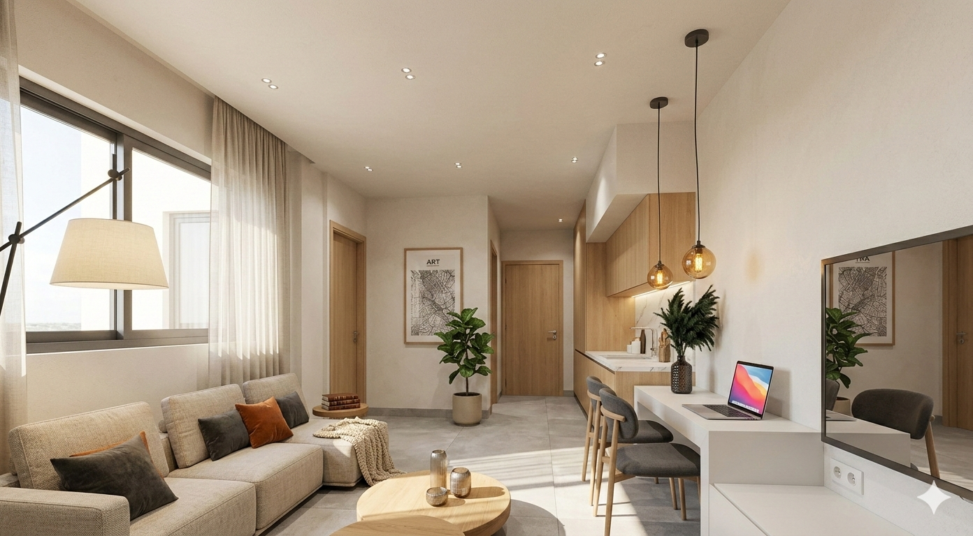 The exterior of the building will exude impressive architecture, with a variety of designs on the balconies that will create a unique visual effect. The interiors have been carefully designed, focusing on the functionality of both the individual spaces and the whole, while ensuring that no compromises are made to the aesthetic dimension of the whole.